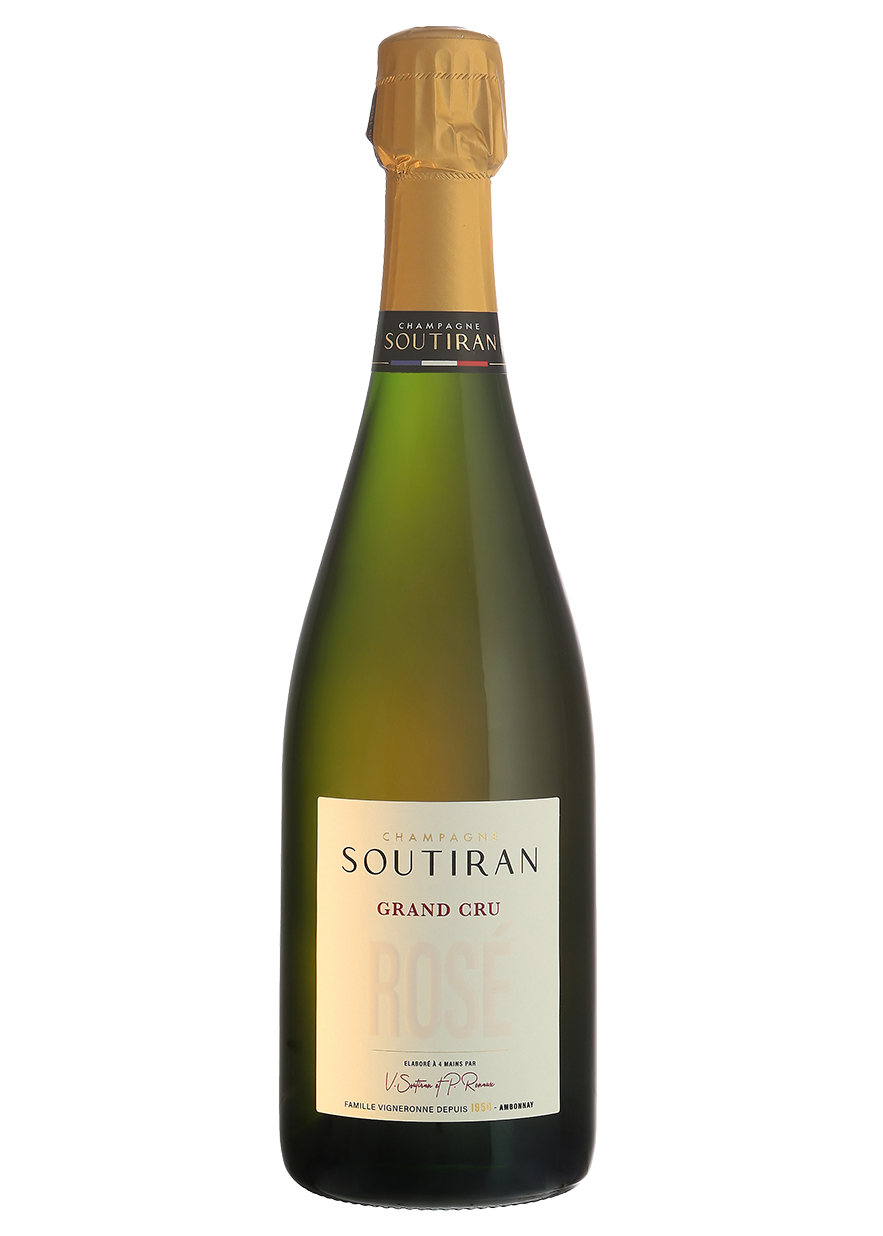 Champagne Rosé Grand Cru is een geheel nieuwe cuvée van het huis Soutiran. Met zijn lichte rosé kleur en delicate fruit aroma's die doet denken aan aardbei en framboosjes is de wijn lichter en eleganter dan stevigere en meer donker rosé gekleurde Rosé de Saignée van Soutiran en daardoor uitermate goed geschikt als aperitief champagne.